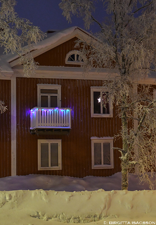 Kiruna kyrka.Aktivelhuset. (Tempohuset.)B 10:an, Gruvfogdegatan.Snusdosan. Bläckhorn. Bromsgatan.Med fönstret mot Adolf Hedinsvägen.Föraregatan. Bolagshus, Hermelinsgatan.Julfint på Empes tak.
