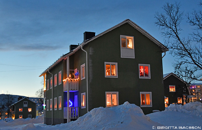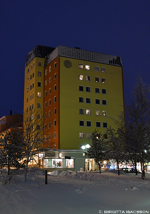 Bolagshus, Hjalmar Lundbohmsvägen.Höghus, Kyrkogatan.Till jul blir den vackra gamla granen i Östermalmsområdet extra fin. Hus i Gula raden.Bolagshus, Laestadiigatan.Föreningsgatan. Palladiumhuset.Kiruna kyrka.