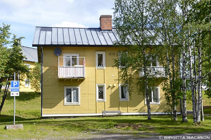 Visst har jag tagit bilder i kvarteret Ortdrivaren tidigare. Men det har bara varit lite så där i förbifarten, och för att jag känt att jag borde ha några bilder fast jag inte tycker att Ortdrivaren är något enastående byggnadsverk. Detta trots att det onekligen bidrar till Kirunas prägel.Den här sommaren fick det i alla fall bli ändring på den saken, det med tanke på att byggnaderna så småningom kommer att rivas. Ett icke alltför betungande fotoprojekt eftersom jag är i Kirunas centrum flera gånger i veckan och dessutom för det mesta har en kamera med mig.Kvarteret Ortdrivaren ritades av den engelsk-svenske arkitekten Ralph Erskine och uppfördes mellan åren 1960-1962. Byggnaderna hade till en början inga speciella namn, men försågs snabbt med sådana av Kirunaborna.I byggnadskomplexet ingår Snusdosan som, med sina 13 våningar, är Kirunas högsta bostadshus. Här finns också tiovåningshuset Spottkoppen. Dessa två höghus binds samman av en lägre byggnad, Herrens pris. Orsaken till namnet är att Missionskyrkan tidigare hade sina lokaler i byggnaden. De andra husen i kvarteret är två låga, gulmålade bostadslängor som fått namnen Mullbänken och Berlinermuren.