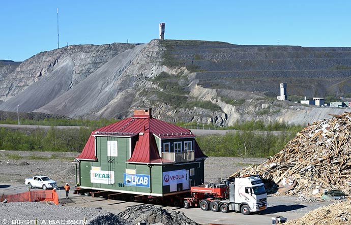 Nu återstår inte mycket av det som förut var Kiruna C.Ett 40 meter långt plank med målningar där man kan ta del av Kirunabarns tankar om framtiden.Några av målningarna på planket i Gruvstadsparken.Tomt på platsen där bläckhornet B 53 förut stod.Tullhuset.Rivning av tullhusets tak. Ullspiran i förrgår. Nu återstår inte mycket av husen som stod närmast E 10:an.Ullspiran.Förberedelser inför flytten av de båda kvarvarande bläckhornen på Gruvfogdegatan.