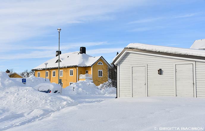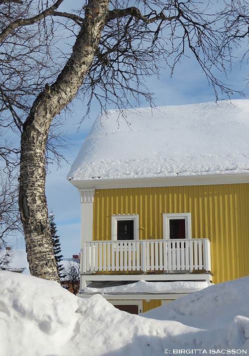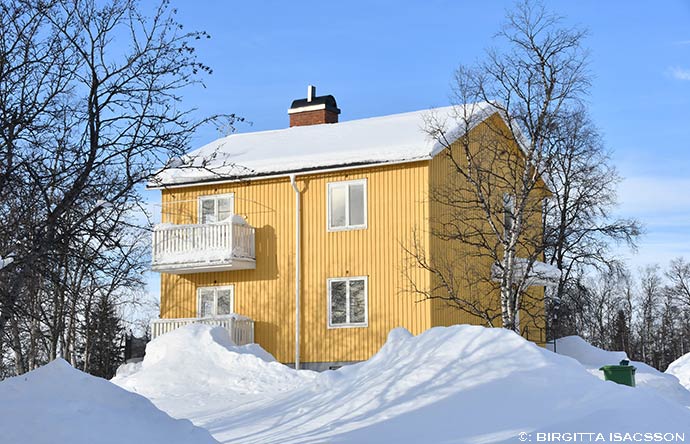 Brytaregatan.Så gott som slut på skidföret men än finns några entusiaster som stakar sig fram i skidspåren.Snusdosan.Jan Vajstedts uggla i Gruvstadsparken håller koll på berget.Kirunas framtid på väg genom gruvstaden.Porfyrvägen.Ett av Kirunas vackraste hus är det här vid Villastigen, tycker jag.Om du gillar fotobloggen med Kirunabilder, eller vill dela det senaste inlägget med andra: