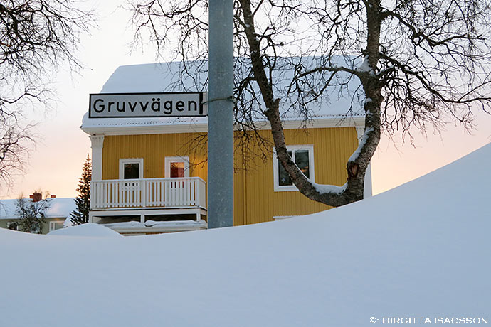 Bolgshus, Gustaf Wickmansgatan. (Det gröna vid Hermelinsgatan.)En av flera fina Borg Mesch-bilder på en badhusvägg.Terrassen.Snöröjning, Gustaf Wickmansgatan.Träarbetaregatan.Gruvvägen.Adolf Hedinsvägen.Lappgatan.Hermelinsgatan.Adolf Hedinsvägen.Mangigatan.Lappbacken.Nu märks det att vi går mot ljusare tider. Gruvvägen klockan 4.45 i förrgår.