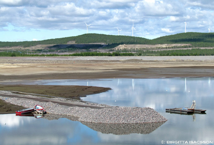 En stor del av sjön är borta nu. Torrlagd. På grund av gruvdriften. Det känns konstigt se förändringen. Det som återstår är bara en massa blottlagd sjöbotten med små vattensamlingar här och där. Till nästa sommar ska LKAB och kommunen ta fram ett förslag på ett landskap som ska anläggas på den gamla sjöbotten. Det har man gjort tidigare också. Det var på 90-talet, då södra änden av sjön tömdes. Och där kan i alla fall inte jag se något speciellt landskap. Det enda jag ser är en massa gräs och vilda växter. Precis såna som man ser på en massa andra ställen i stan.