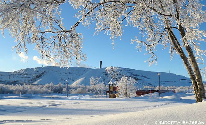 Konstverk i Gruvstadsparken, design Jan Vajstedt.Ferrumparken.Snöröjning längs Hjalmar Lundbohmsvägen.LKAB:s gamla laboratorium (Förmansklubben), Bromsgatan.Byggnader vid Thulegatan.Bolagshus och uthus.Månen på väg att gå ner bakom gruvan.Berlinmuren.Ullspiran. Här stod husen på fyrans gård.
