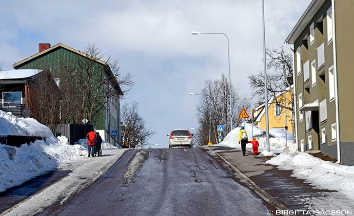 Gångbana mellan Coop och Bromsgatan.Fint flaggväder och svinkallt på EU-dagen i tisdags.Hjalmar Lundbohmsvägen.Utsikt mot stan från Värmeverksvägen.Bolagshus, Hjalmar Lundbohmsvägen.I ett fönster hos Nybergs Mekaniska Verkstad.Bromsgatan.Vy från Ferrumparken.Stans lyxigaste skatbo – en etta med utsikt över centrum.Det inte längre någon idé med renoveringar, men visst är det trist med slitna fasader i centrum.