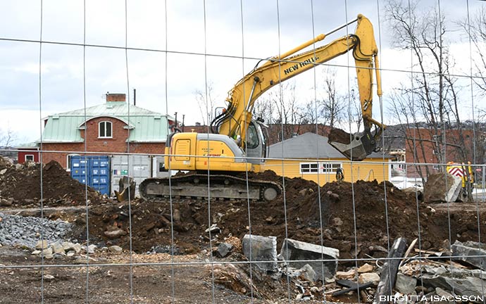 Nu återstår inte mycket av det som förut var Kiruna C.Ett 40 meter långt plank med målningar där man kan ta del av Kirunabarns tankar om framtiden.Några av målningarna på planket i Gruvstadsparken.Tomt på platsen där bläckhornet B 53 förut stod.Tullhuset.Rivning av tullhusets tak. Ullspiran i förrgår. Nu återstår inte mycket av husen som stod närmast E 10:an.Ullspiran.Förberedelser inför flytten av de båda kvarvarande bläckhornen på Gruvfogdegatan.